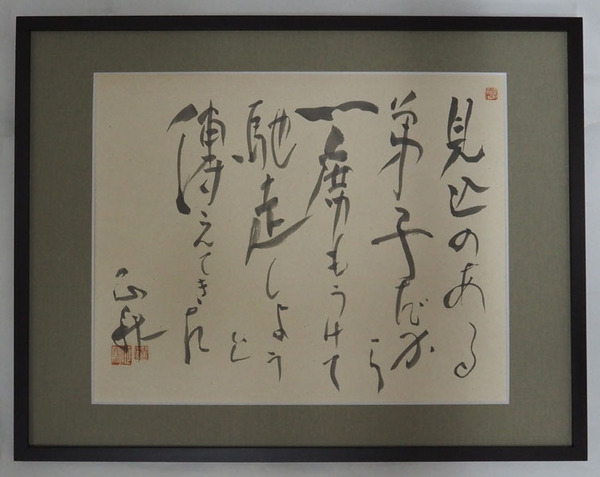 立原正秋書額 『見込のある弟子だから一席もうけて馳走しようと傳えてきた』 毛筆書落款入