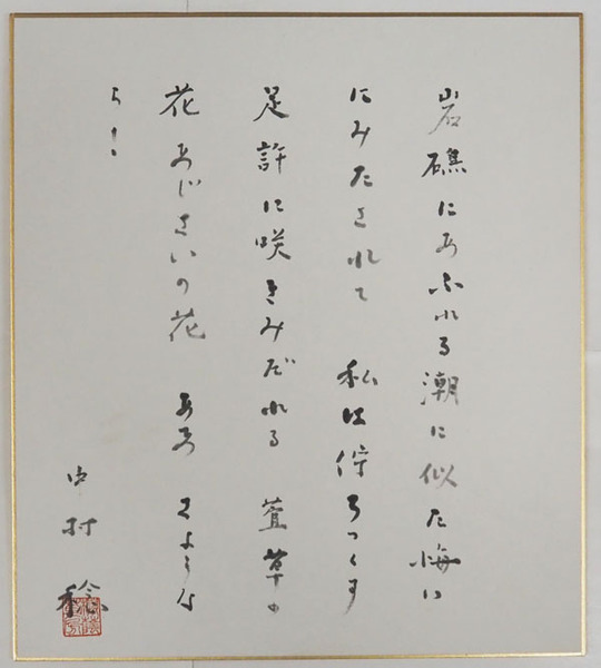 中村稔色紙 毛筆書落款入