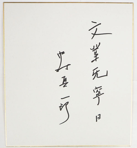 中村真一郎色紙 『文業旡寧日』 Sペン書