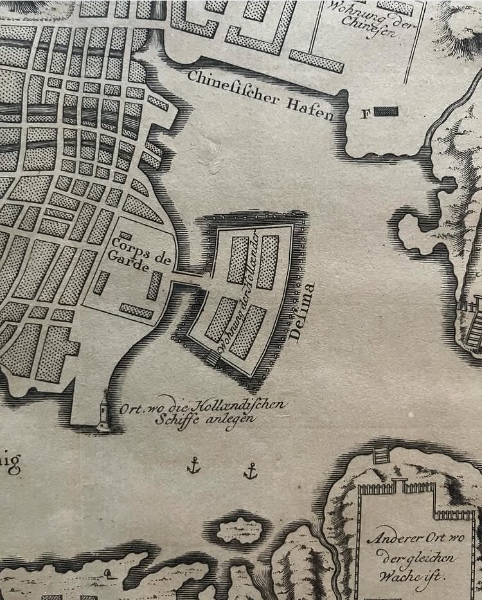 長崎古地図 ベラン(出島)1752年 Grundriss von dem Hafen und der Stadt Nangasaki