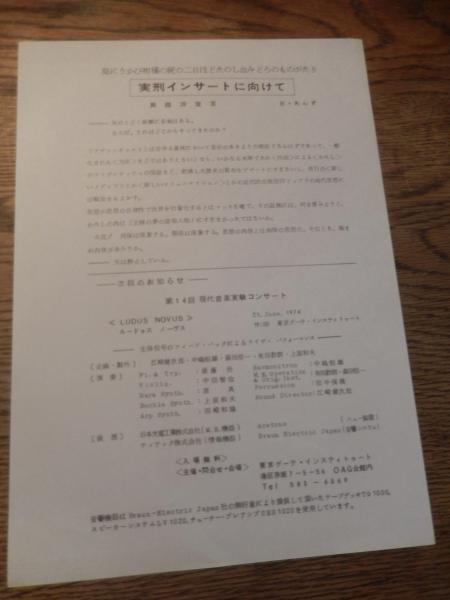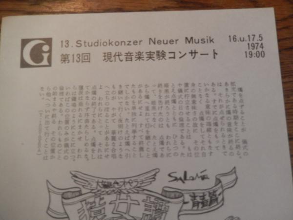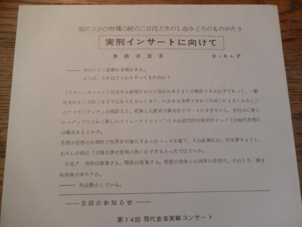 第13回 現代音楽実験コンサート 1974年 東京ゲーテ・インスティトゥートの主催「少女過激団」公演『大観念オペラ・猿女譚』1974年5月16、17日、ドイツ大使館の文化施設、OAGホール実刑インサートに向けて 渠にうかび柑橘の屍に二日ほどたのし血みどろのものがたり舞踏派宣言 S・あんず (舞踏家古川あんず)Anzu Furukawa