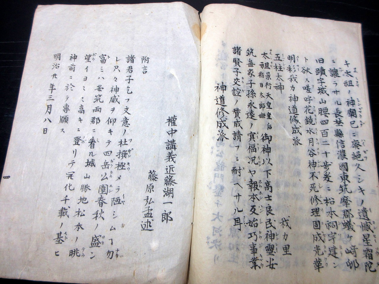 • 解説 和本明治20年(1887)神道修成派「安筑有神廼記事(有明開神記)」1冊/近藤湖一郎弘孟/古書古文書/木版摺りです。