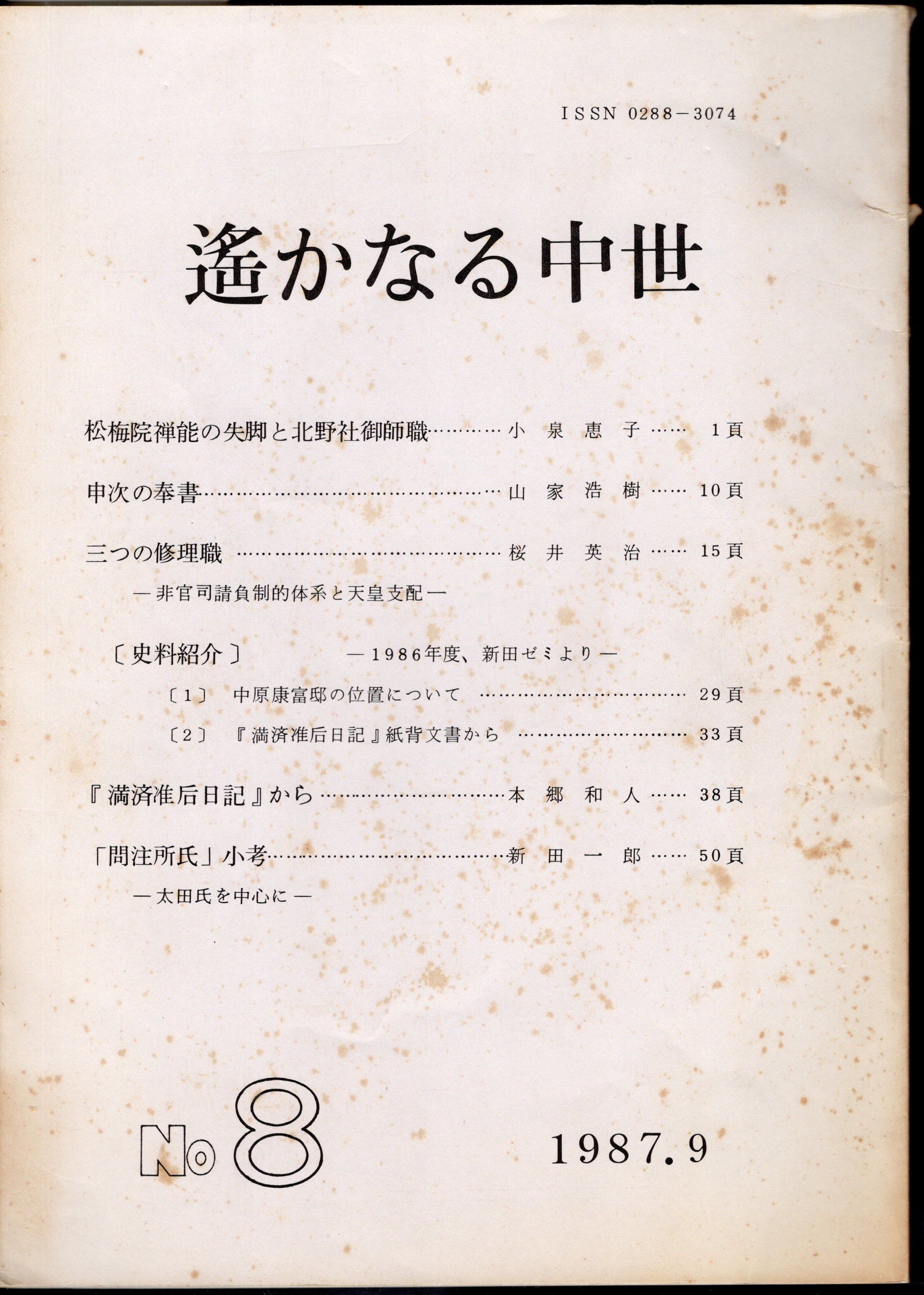 中世史研究会会報 遙かなる中世 No.8