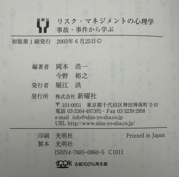 リスク・マネジメントの心理学 : 事故・事件から学ぶ