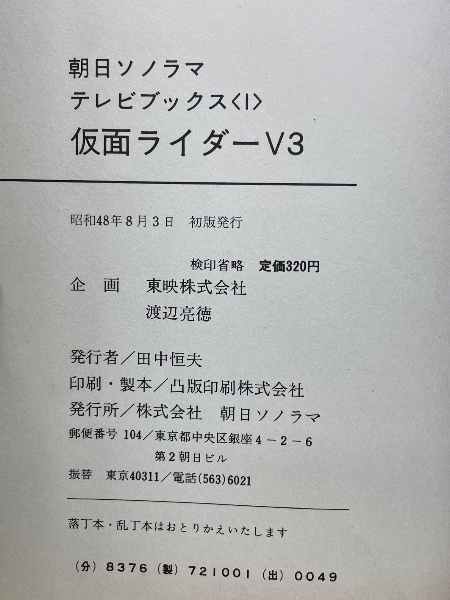 仮面ライダーV3 朝日ソノラマテレビブックス 1