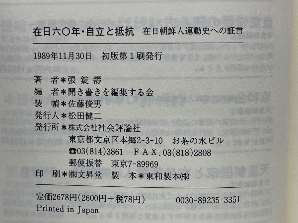 在日六〇年・自立と抵抗 在日60年 在日朝鮮人運動史への証言