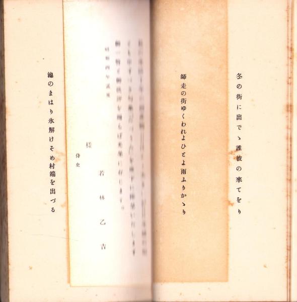 • 解説 新書判変型、非売品、挨拶状付、巻頭2頁一部茶色に変色(挨拶状挟み込みのため)、背下部少打ち身、小口に経年しみ