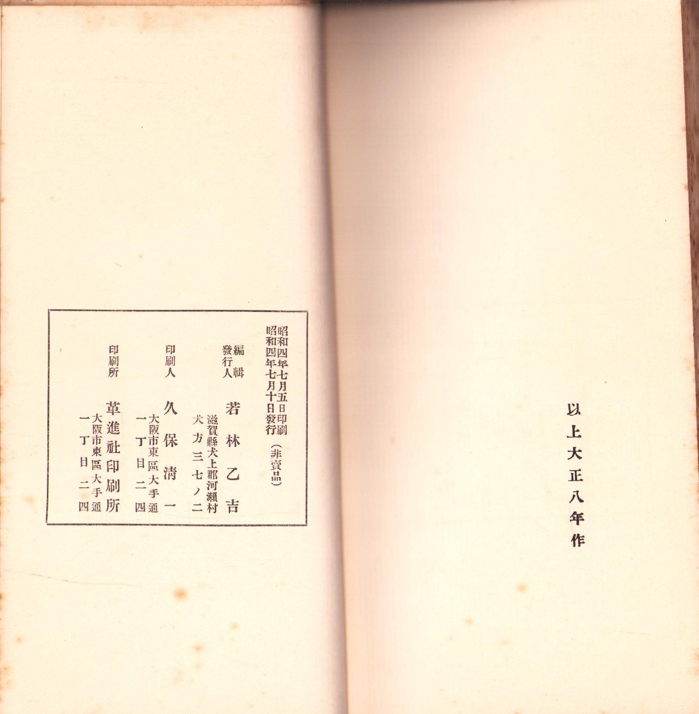 • 出版社 発行人・若林乙吉(滋賀県犬上郡河瀬村)