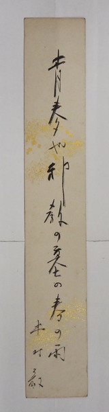 木村毅短冊 『青麦や邪教の墓の春の雨』毛筆書