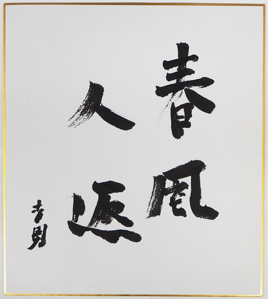 平野吉男色紙 『春風人返』 毛筆書