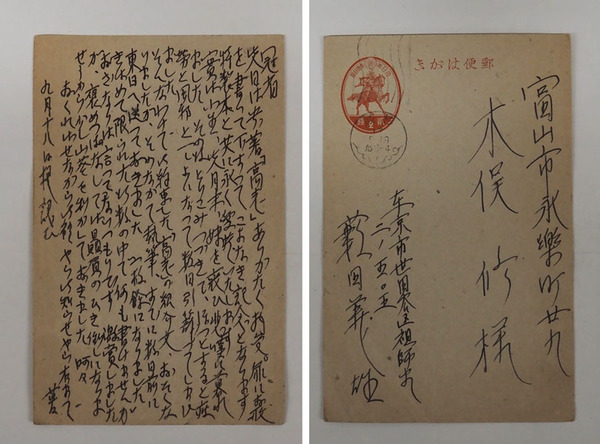 薮田義雄葉書 木俣修宛ペン書14行