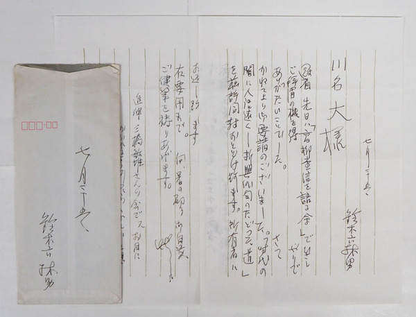 鈴木六林男書簡 川名大宛 ペン書2枚 封付(住所表記無) 『…所有者ハ斎藤(西東)家でございますので…』