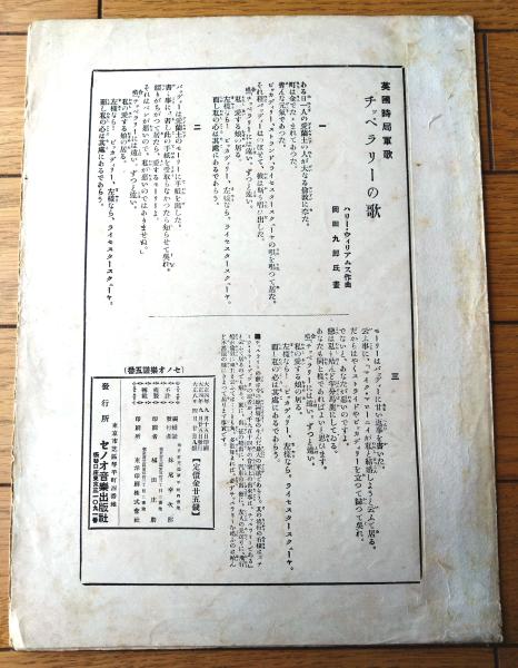 楽譜【チッペラリーの歌(英国時局軍歌)/A4サイズ・6ページ】セノオ楽譜(大正8年)