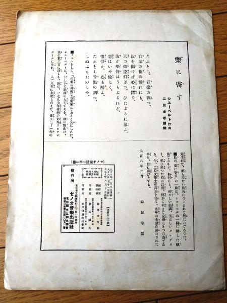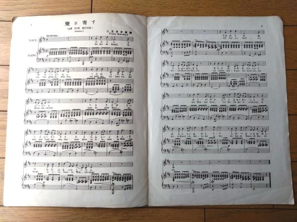 楽譜【楽に寄す(シューベルト・作曲/二見考平・訳詞)/A4サイズ・4ページ】セノオ楽譜(大正10年)