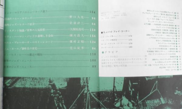 ミントンハウスとビ・バップ・事件的回想③/油井正一 フランスでも前衛ジャズが話題になっている/植草甚一 ミンガスにおけるエリントンの影/本多俊夫 アメリカ・ジャズ界現有勢力(ベース)/いソノてルオ ニューポート・ジャズ祭見聞記/蔡垂炳 枯淡のソニー・ロリンズ/野口久光 ウディ・ハーマン・バンドの素晴らしき全貌/瀬川昌久 他
