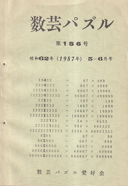 数芸パズル 第156号 昭和62年 5-6月号 <数芸パズル156>