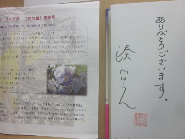 • 解説 B6カバー帯 署名・落款入り サイン会にて配布された「湊かなえアナログ・ブログ3 花の鎖 発売号」(A4用紙1枚 印刷 折れ跡あり)付き