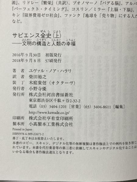 サピエンス全史(上)文明の構造と人類の幸福 河出書房新社 ユヴァル・ノア・ハラリ