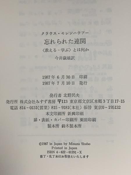 忘れられた連関―「教える‐学ぶ」とは何か みすず書房 K. モレンハウアー