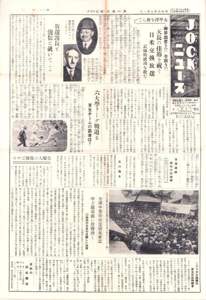 • 著者 〈天長の佳節を祝ぐ日米交換放送〉〈六大学リーグ戦迫る -更生チームの覇者は?-〉〈全国中等学校選抜大会記 -甲子園原頭に歓声湧く-〉〈気象通報の用語に就いて(3)〉〈探偵小説 希望続々・・〉〈当支部県市別聴取者増加趨勢表〉