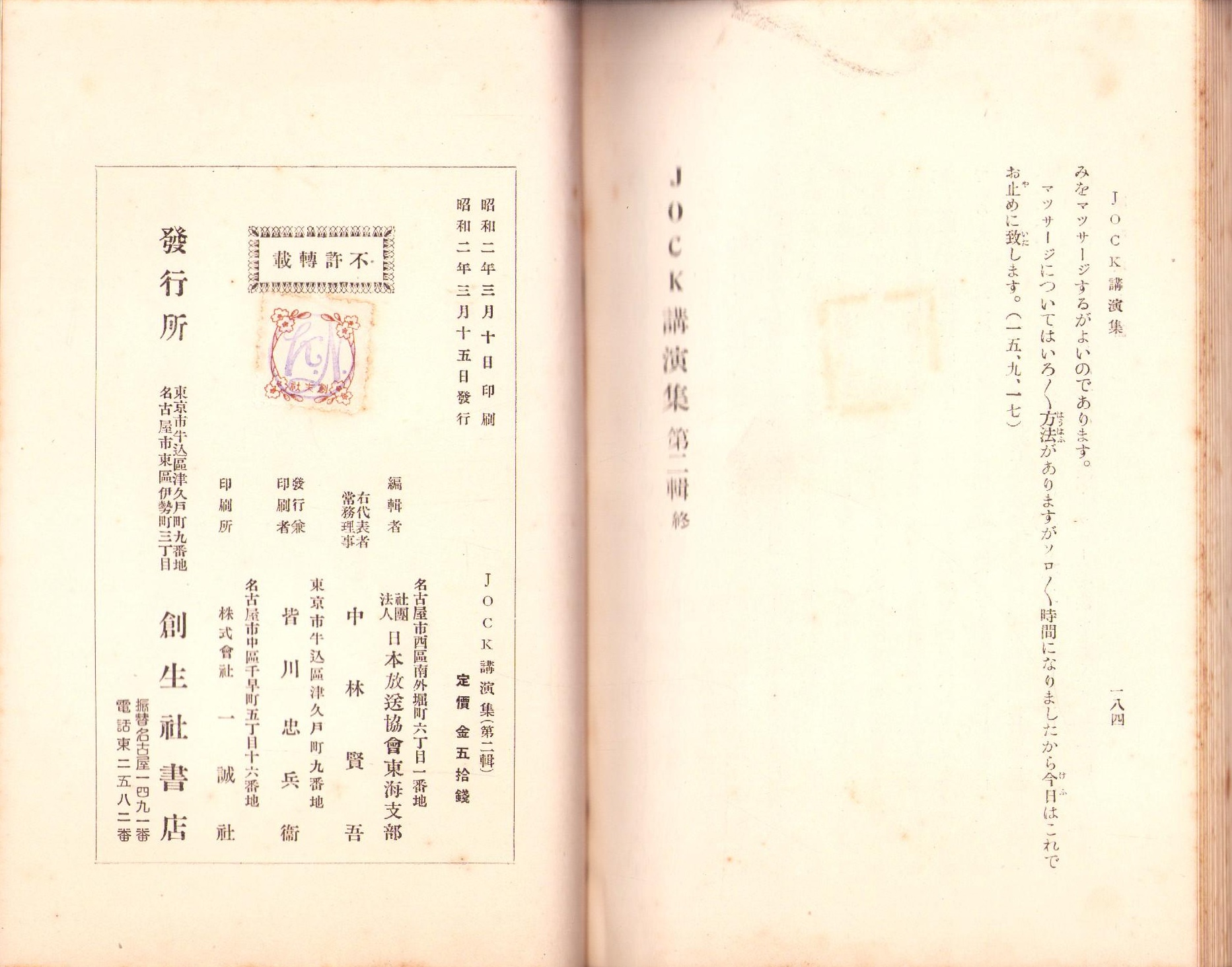 JOCK講演集 第2輯 -昭和2年3月-(名古屋市)