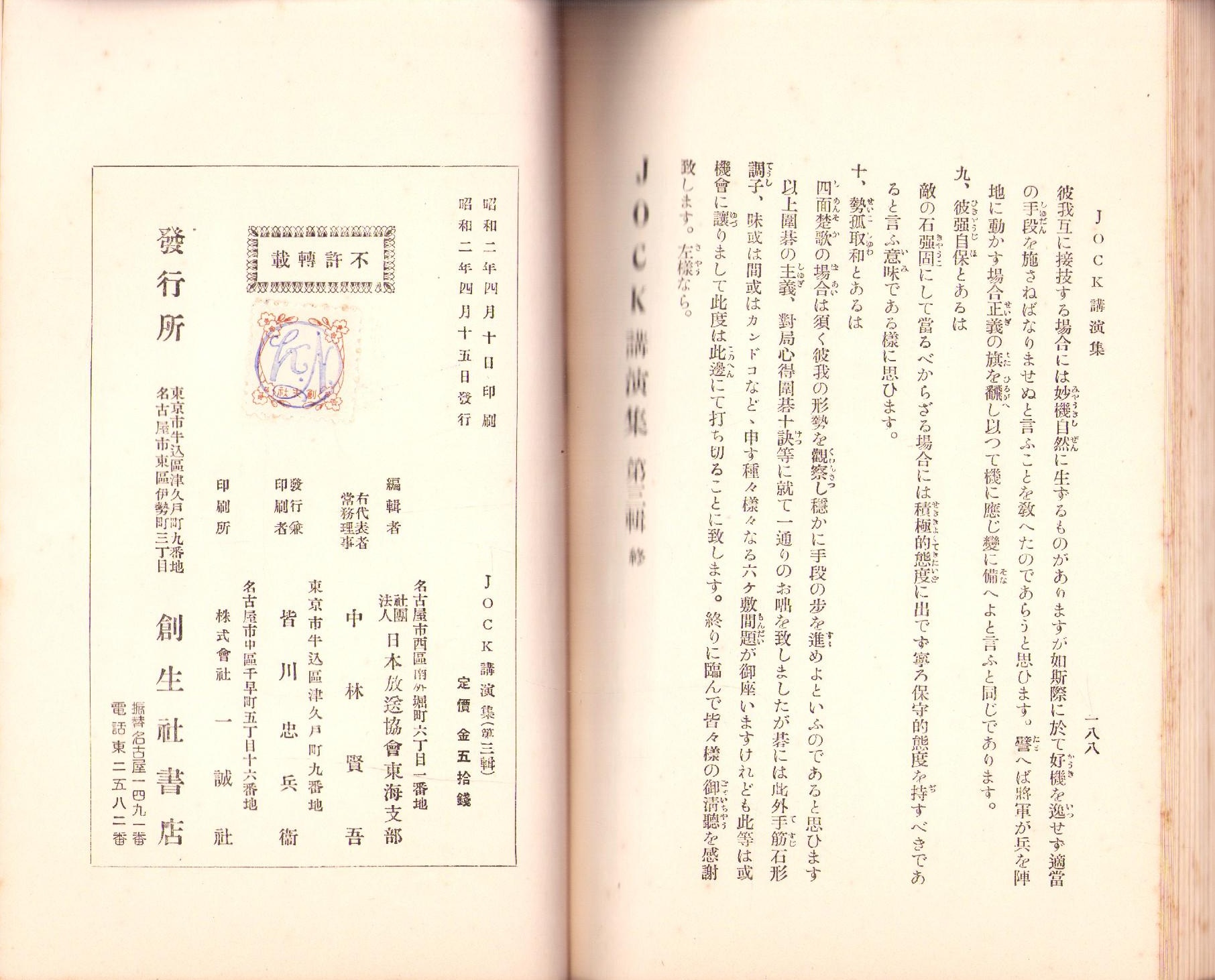 JOCK講演集 第3輯 -昭和2年4月-(名古屋市)