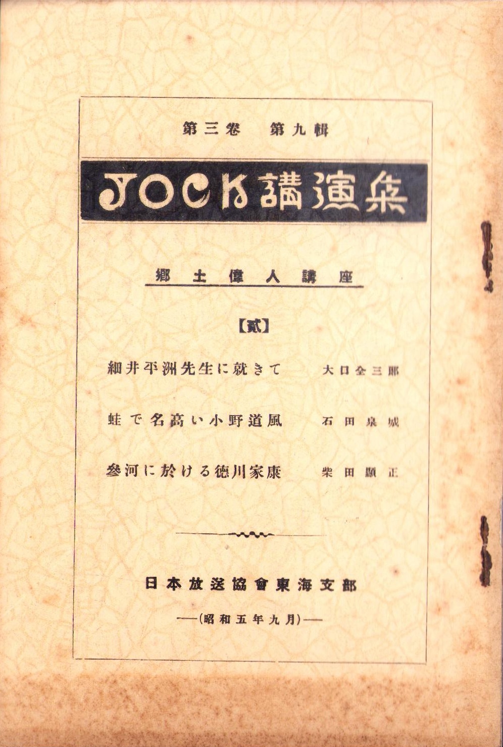 JOCK講演集 第3巻第9輯 -郷土偉人講座2- 昭和5年9月(名古屋市)