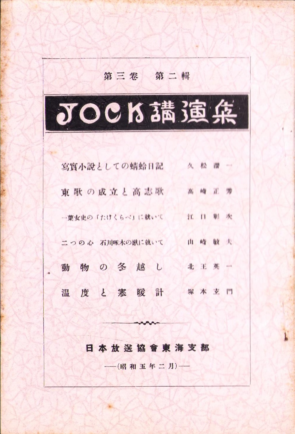JOCK講演集 第3巻第2輯 -昭和5年2月-(名古屋市)