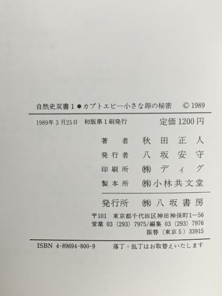 自然史双書 1 カブトエビ: 小さな卵の秘密 八坂書房 秋田 正人