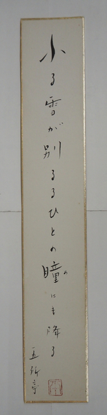 五所平之助短冊 『ふる雪が別るるひとの瞳にも降る』 毛筆書落款入