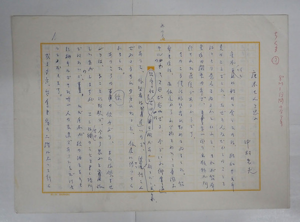 中村光夫草稿 『唐木さんを思ふ』 ペン書四百字詰9枚完