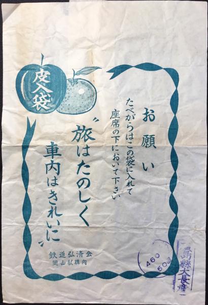 〈駅弁票・駅弁掛け紙〉岡山駅 鉄道弘済会 『皮入袋』