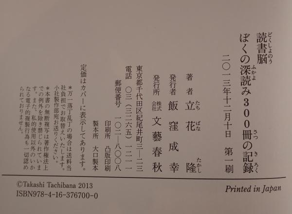 読書脳 : ぼくの深読み300冊の記録 第1刷