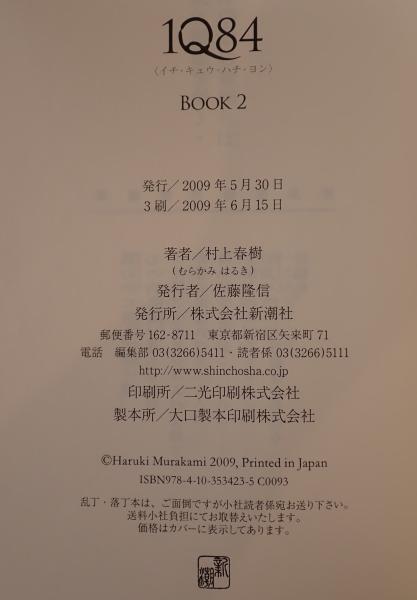 1Q84(イチ・キュウ・ハチ・ヨン) book 2(7月-9月) 3刷