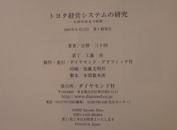 トヨタ経営システムの研究 : 永続的成長の原理 第1刷発行