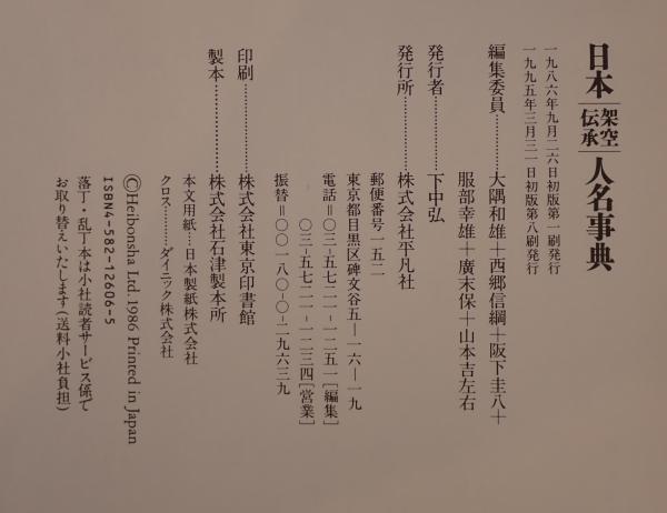 日本架空伝承人名事典 初版第8刷
