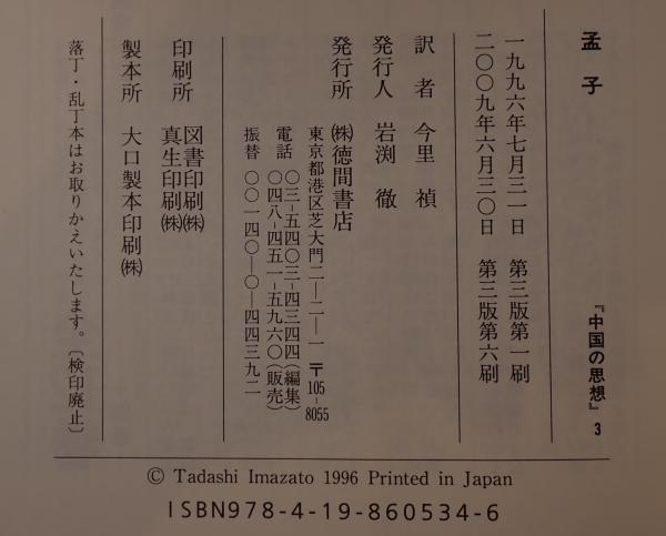 中国の思想 3 <孟子 (経典) 3> 第3版.第6刷