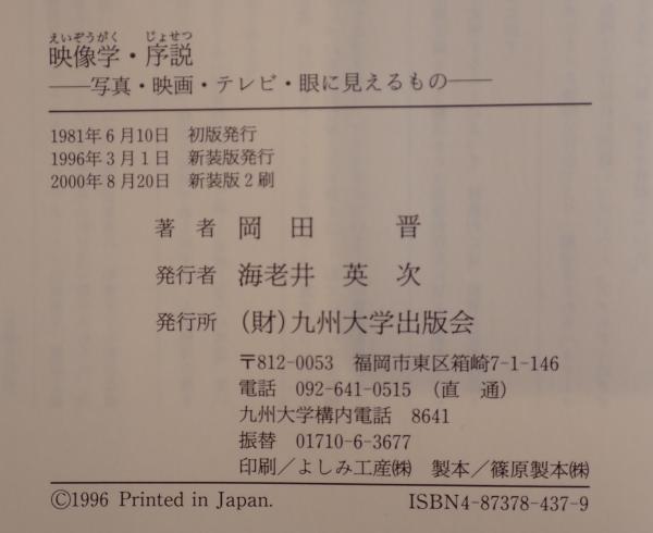 映像学・序説 : 写真・映画・テレビ・眼に見えるもの 新装版 2刷