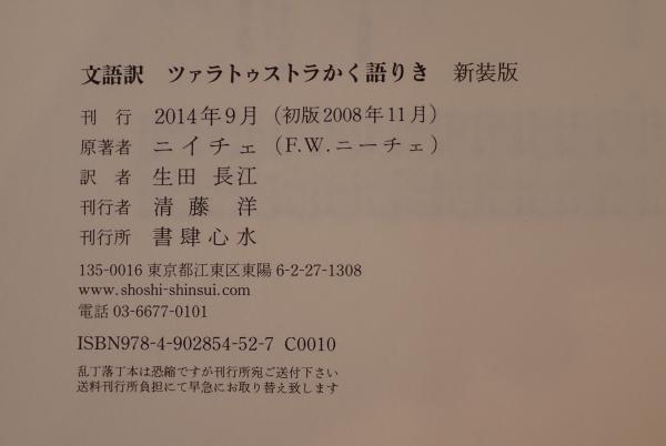 • 解説 ニーチェの代表作「ツァラトゥストラかく語りき」の文語訳版