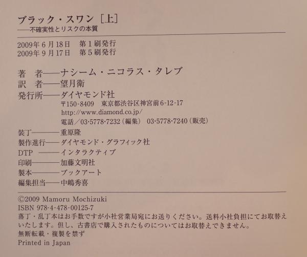 ブラック・スワン : 不確実性とリスクの本質 上、下 第5刷