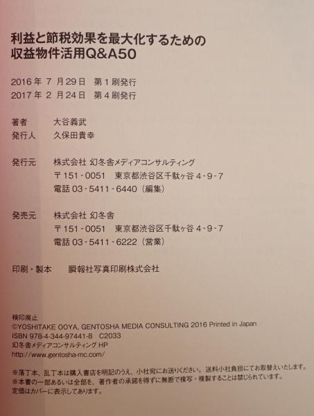 利益と節税効果を最大化するための収益物件活用Q&A50 第4刷発行