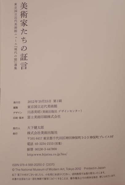 • 解説 東京国立近代美術館ニュース「現代の眼」選集。日本近現代美術の巨匠たち72人による同時代美術についての証言集。