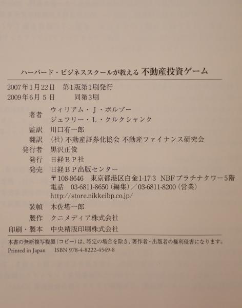 ハーバード・ビジネススクールが教える不動産投資ゲーム 第3刷