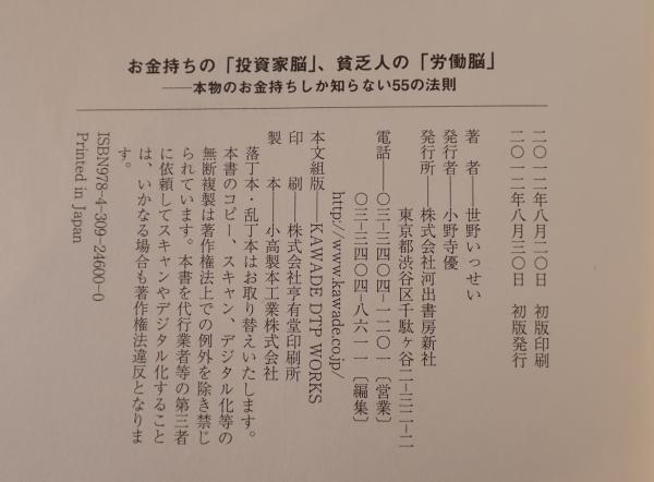 お金持ちの「投資家脳」、貧乏人の「労働脳」 : 本物のお金持ちしか知らない55の法則