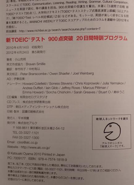 • 解説 TOEIC900点突破を目指す20日間の特別訓練プログラム。付属CD3枚付き。