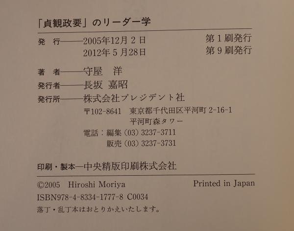 「貞観政要」のリーダー学 : 守成は創業より難し <貞観政要> 第9刷
