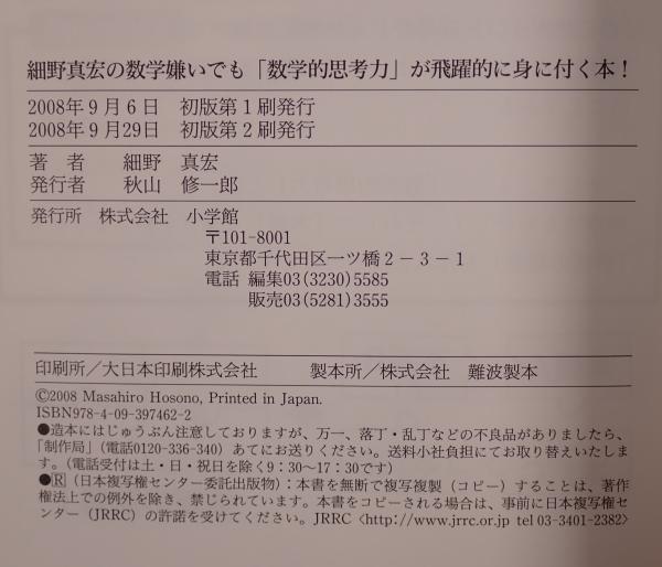 細野真宏の数学嫌いでも「数学的思考力」が飛躍的に身に付く本! 初版第2刷