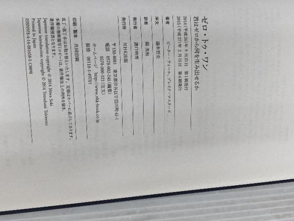 【※カバー無し】ゼロ・トゥ・ワン 君はゼロから何を生み出せるか NHK出版 ピーター・ティール