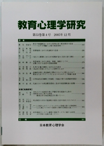 教育心理学研究 第53巻 第4号 2005年12月号