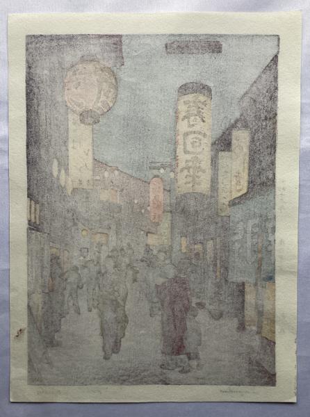 • 解説 吉田遠志 夜の東京 新宿 昭和十三年 木版画 摺りサイン 17.3×23.9cm
